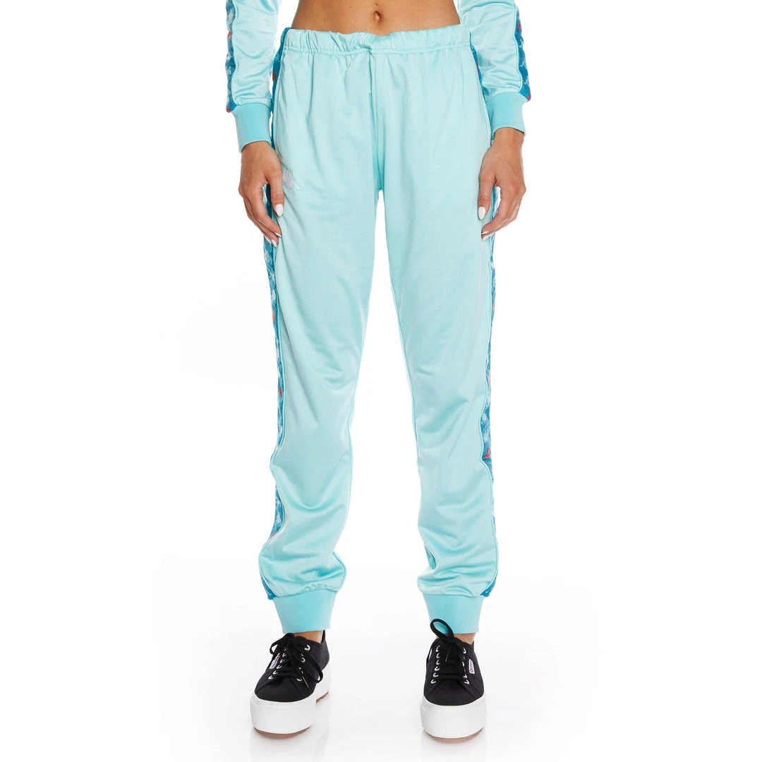 Womens sport trousers in brushed tricot. REGULAR FIT. Elastic waist band with coulisse, side pockets, ribbed bottom, jacquard Omini logo tape in Lurex yarn with piping down leg. Laser cut Omini logo. Textile Composition Entire: Polyester 100%.