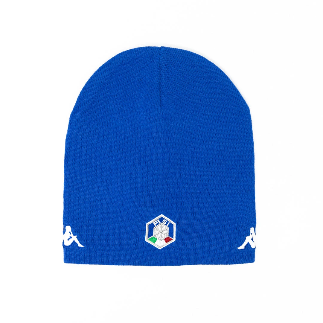 Unisex Beanie hat in wool and polyamide blended knit. Embroidered Omini logos and Team personalizations. FISI. MATERIALS: Acrylic 50% – Wool 50%