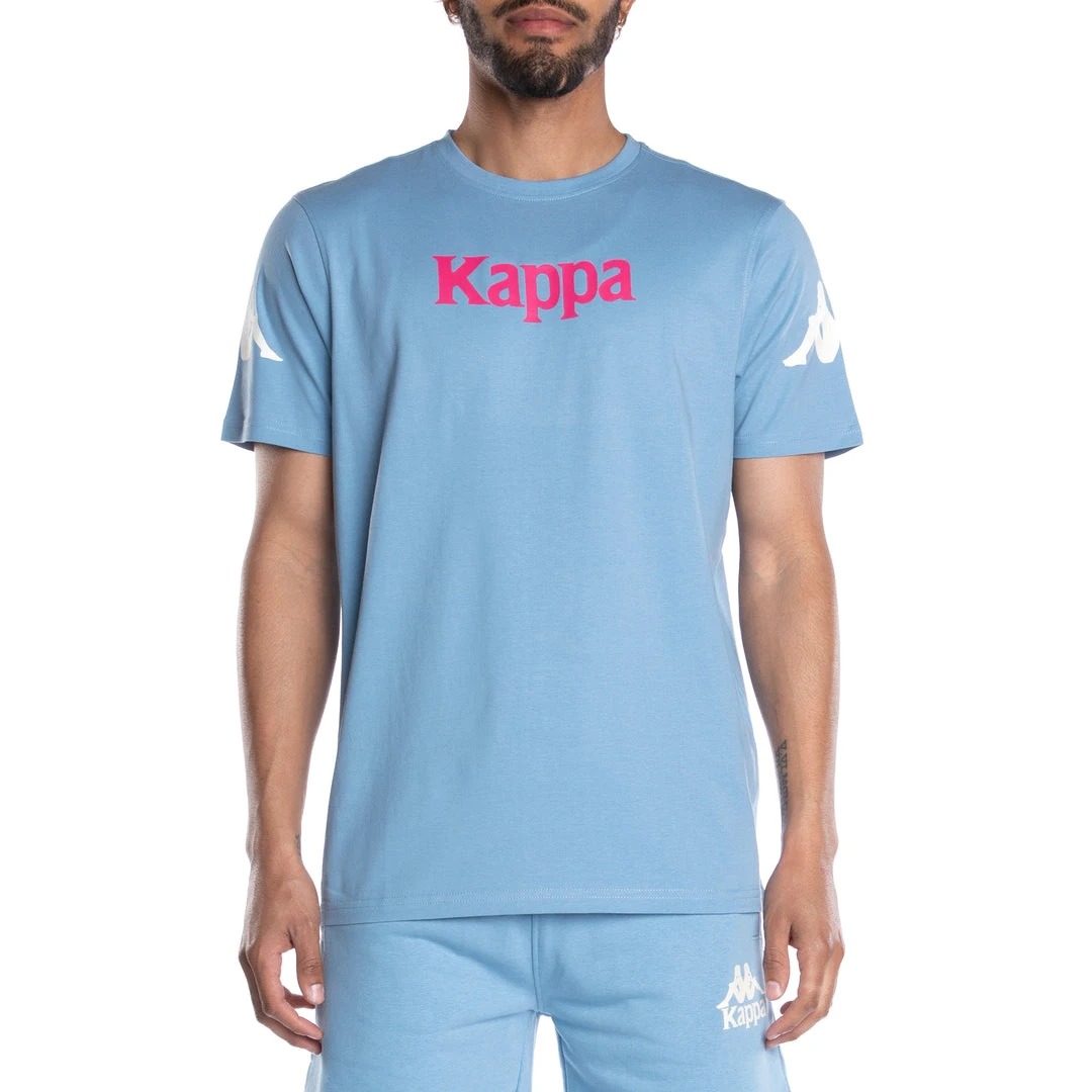 Mens round neck t-shirt in jersey. REGULAR FIT. Kappa lettering printed on chest, Omini logo printed on back. Textile Composition: Cotton 100%
