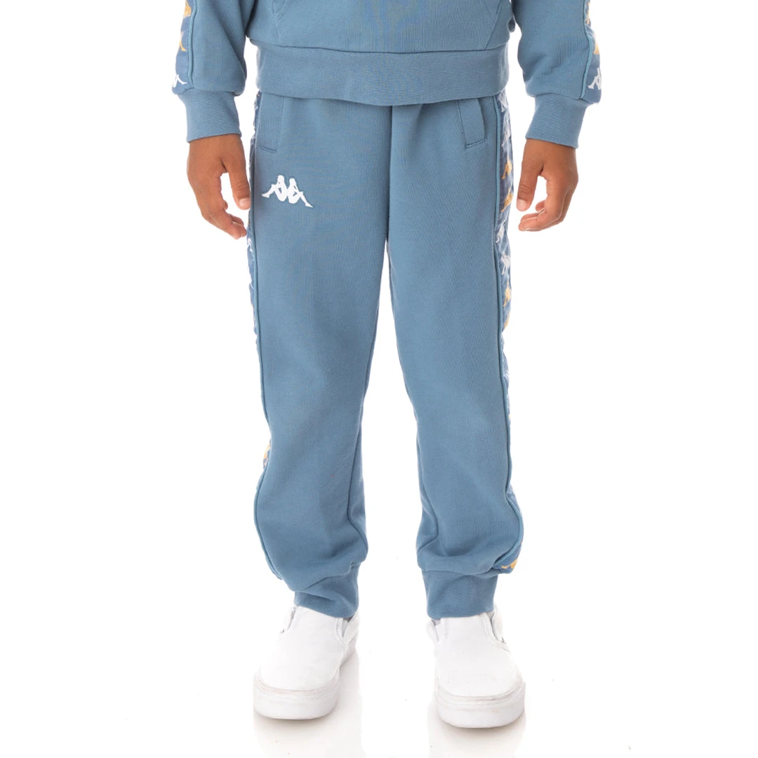 Kids sport trousers in french terry. REGULAR FIT. Jacquard Omini logo tape with piping, side pockets and zipped pocket on back, printed Omini logo. Textile Composition: Cotton 80% , Polyester 20%