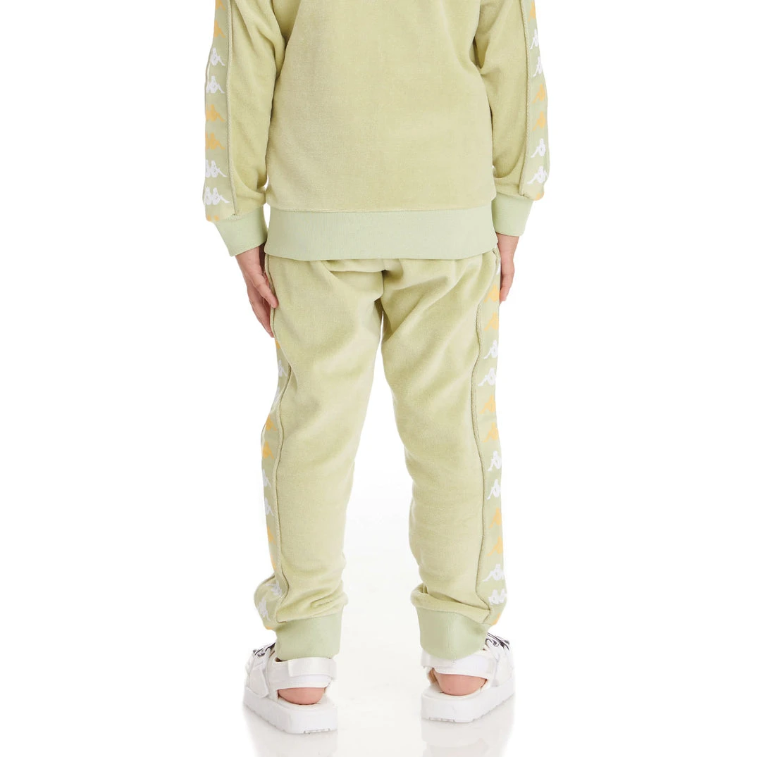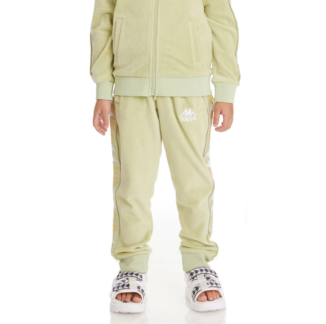 Kids sport trousers in velour REGULAR FIT. Jacquard Omini logo tape with piping, side pockets and zipped pocket on back, embroidered logo. Textile Composition: Cotton 75%, Polyester 25%’