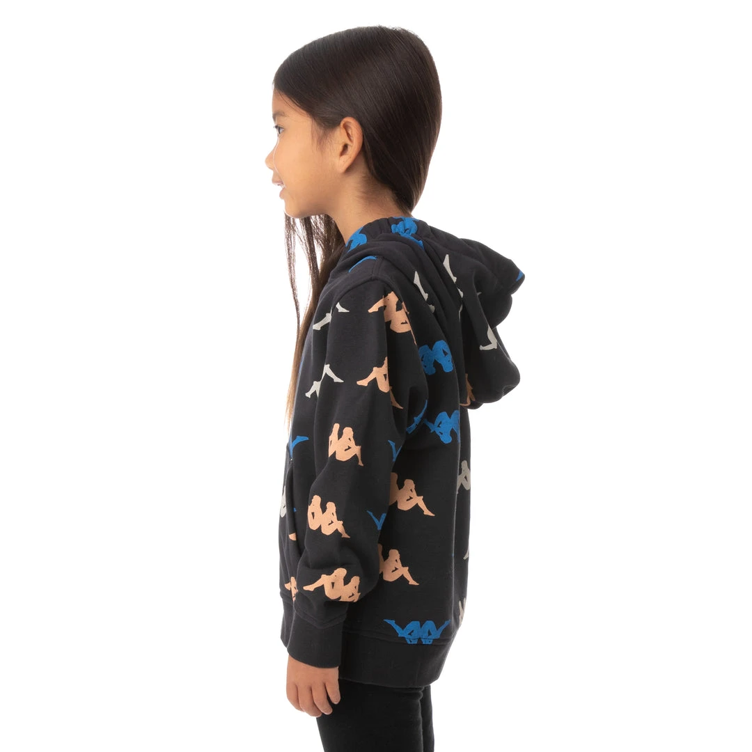 Kids hoodie in french terry. REGULAR FIT. Fixed adjustable hood with coulisse, kangaroo pocket. Printed all over graphic. Textile Composition: Cotton 80% , Polyester 20%.