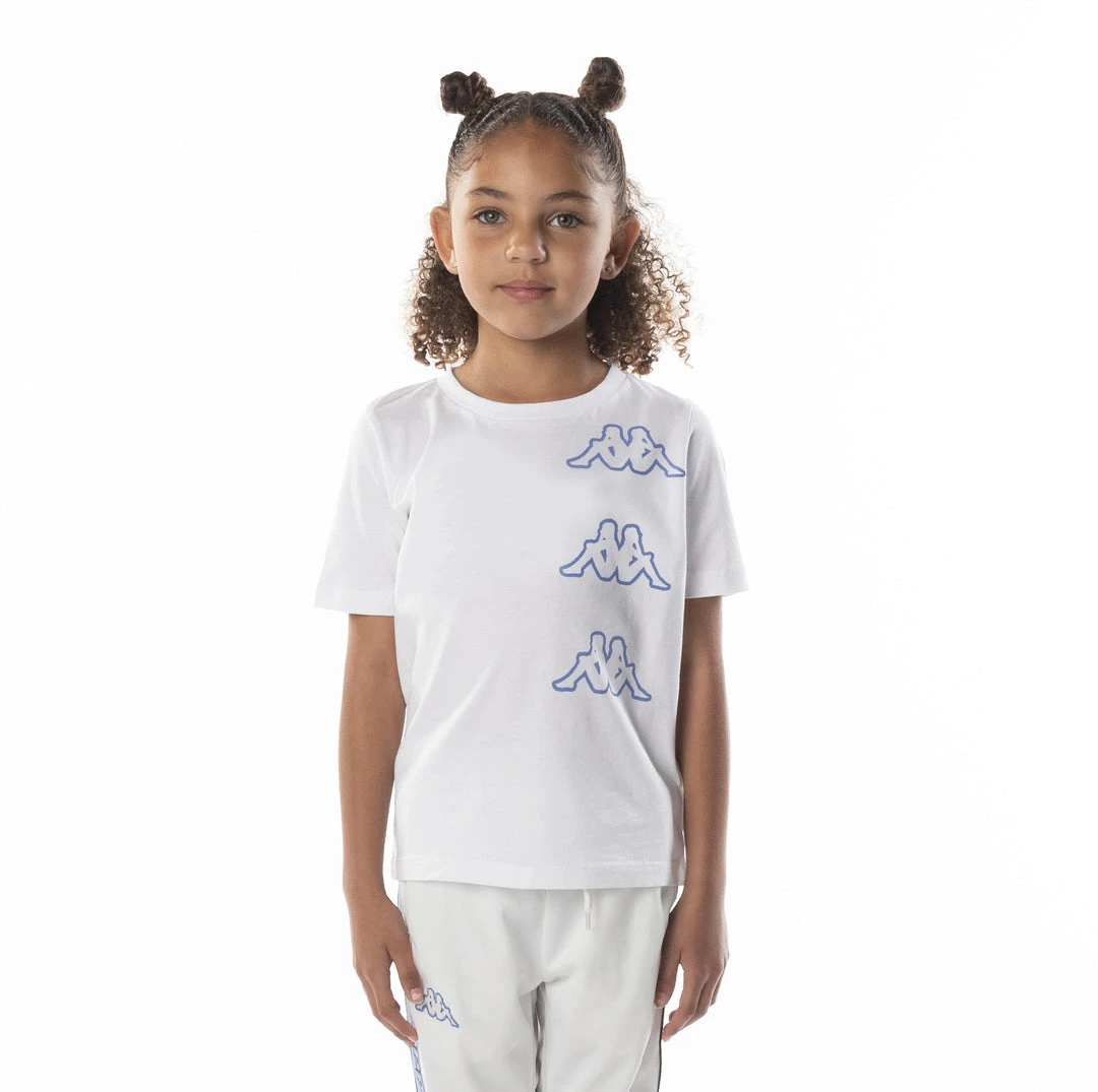 Kids T-shirt in cotton jersey fabric. REGULAR FIT. Short sleeves, round neck. 3 Omini Logo frontal screen print. Vertical lettering Kappa screen print on back.