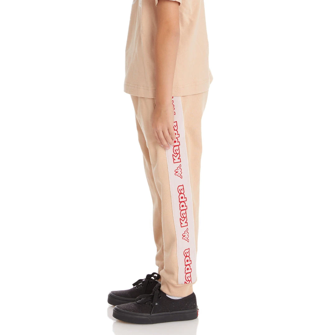 SPORT. Kids pants in french terry fabric. REGULAR FIT. Ribbed bottom, elasticated waist and side pockets. Logo Tape applied on the side. Omini Logo embroidered on leg.