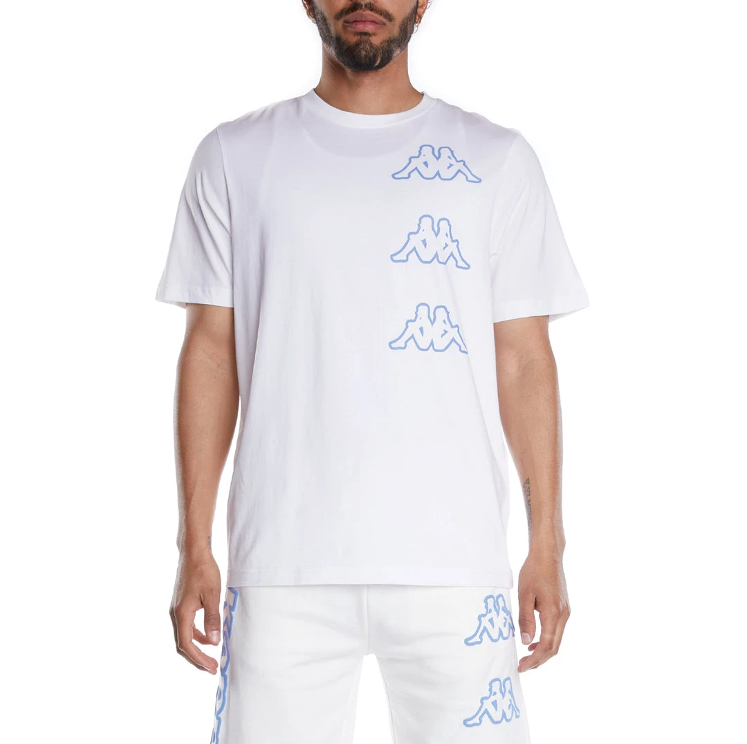 Mens T-shirt in cotton jersey fabric. REGULAR FIT. Short sleeves, round neck. 3 Omini Logo frontal screen print. Vertical lettering Kappa screen print on back.