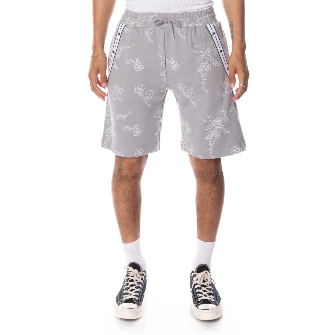 Mens sport shorts in french terry. REGULAR FIT. Elasticated waistband with coulisse, side pockets, back zipped pocket, Omini Japan jacquard banda tape applied on garment, patch applied on back. All-over floral print. Textile Composition: Cotton 100%