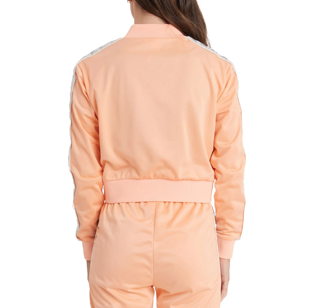 Womens cropped sweatshirt in brushed tricot. SLIM FIT. Bomber collar, ribbed borders, full zip. Jacquard classic tape with piping, laser cut Kappa logo applied on chest. Textile Composition: Polyester 100%