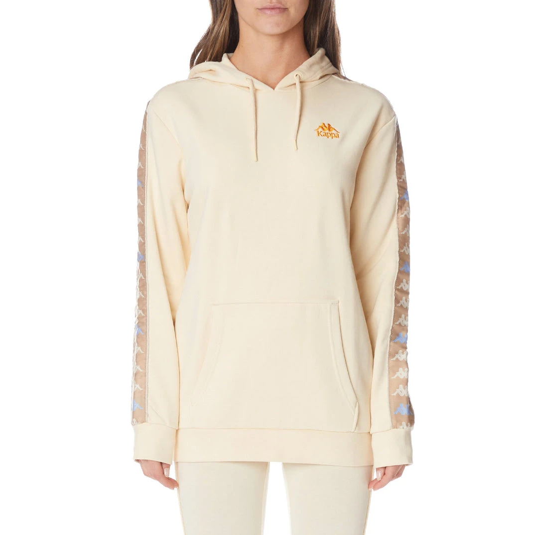 Womens hoodie in french terry. REGULAR FIT. Hood with inner coulisse, kangaroo pocket, ribbed borders. Omini logo tape in Lurex with piping applied on sleeves, Authentic logo embroidered on chest. Textile Composition: Cotton 80%, Polyester 20%.